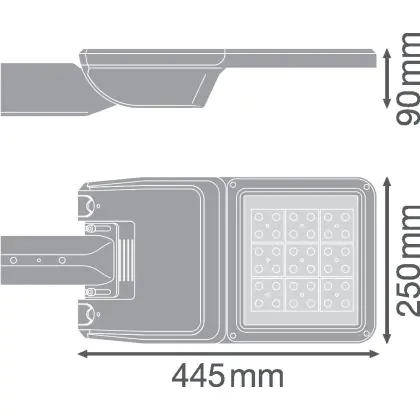 Descrizione Ledvance Illuminazione stradale LED Flex Grande RV25ST Grigio 36W 4950lm 25x145D - 730 Luce Calda | IP66 – Asimmetrico