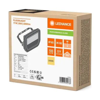 Descrizione Ledvance Proiettore LED Aluminium Nero 17W 2200lm 100D - 830 Luce Calda - | IP66 - Simmetrico