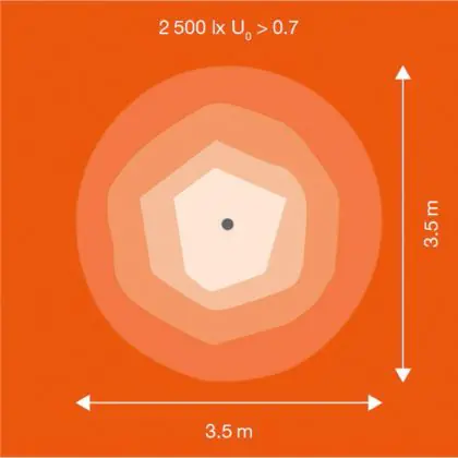 Questo apparecchio può essere usato sia in spazi interni che in spazi esterni, poiché ha indice di protezione contro l'ingresso di acqua e polvere IP66. In generale, un apparecchio con IP44 è resistente a schizzi di acqua e umidità, e può quindi essere installato in spazi esterni molto umidi o esterni riparati, come sono una tettoia. Un apparecchio che invece verrà esposto a intensi getti di acqua deve avere almeno IP54. Questa lampada ha anche un indice di resistenza a urti e impatti di IK08 - 5 Joule