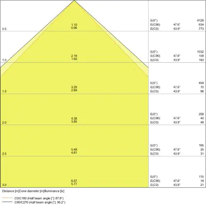 L'apertura del fascio luminoso indica l'angolo del fascio di luce proveniente da una lampada o lampadina. Si misura in gradi (D) e più piccolo è l'angolo, più piccola è l'apertura del fascio di luce.