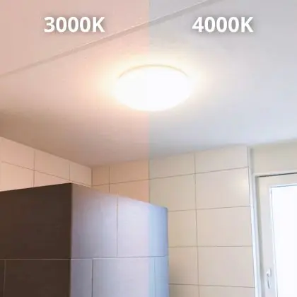Per scegliere un apparecchio di illuminazione bisogna anche considerare dove verrà installato. Per esempio la luce di 2700 Kelvin (bianco molto caldo) e 3000 Kelvin (bianco caldo) creano un’atmosfera rilassante e piacevole. Questa tonalità è quindi molto adatta ad ambienti accoglienti o a zone generiche come corridoi, ascensori, disimpegni o pianerottoli. Una luce di 4000 Kelvin (bianco freddo), invece,è più luminosa e fresca ed è quindi adatta come illuminazione funzionale in uffici, aziende, scuole e biblioteche. La temperatura di colore di questa plafoniera LED è 3000K - Luce Calda.
