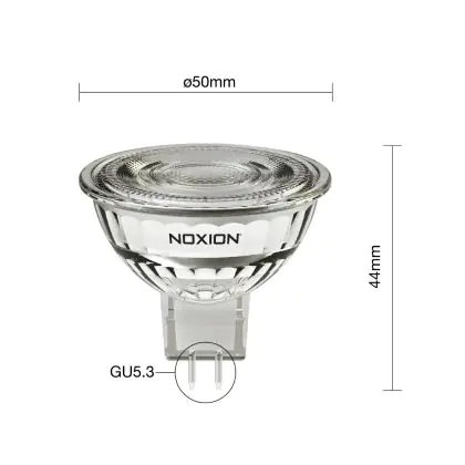 La Noxion Faretti LED GU5.3 MR16 6.1W 621lm 36D - 827 Bianco Molto Caldo | Sostitutiva 50W è perfetta per la sostituzione della classica lamapda alogena50W GU5.3 con colore della luce 827 Bianco Molto Caldo. Questa lampadina ha una forma Spot con un diametro di 50mm. La distanza tra I due pins è di 5.3mm. Queste lampade hanno bisogno di un trasformatore poiché operano a 12V. I trasformatori possono essere trovati in "Accessori" su questa pagina. Qual’è il trasformatore adatto? Dipende dal numero di lampade che si vuole installare. Il nostro servizio di vendita e assistenzati ti aiutera nella scelta. Passare a LED offre molti vantaggi!