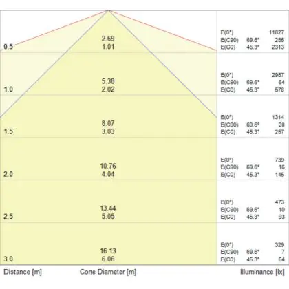 L'apertura del fascio luminoso indica l'angolo del fascio di luce proveniente da una lampada o lampadina. Si misura in gradi (D) e più piccolo è l'angolo, più piccola è l'apertura del fascio di luce.