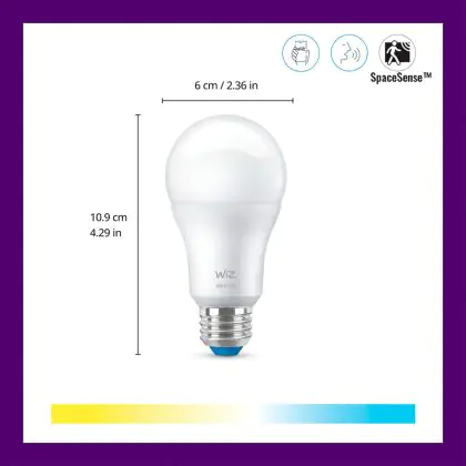 La Pacco doppio 2x WiZ Smart LED E27 Pera Ghiaccio 8W 806lm | Miglior Resa Cromatica - Dimmerabile - Sostitutiva 60W è la perfetta sostituzione per la tua lampada convenzionale 60W con attacco E27 grazie alla sua tecnologia LED. Passare a LED ti offrirà tanti vantaggi!